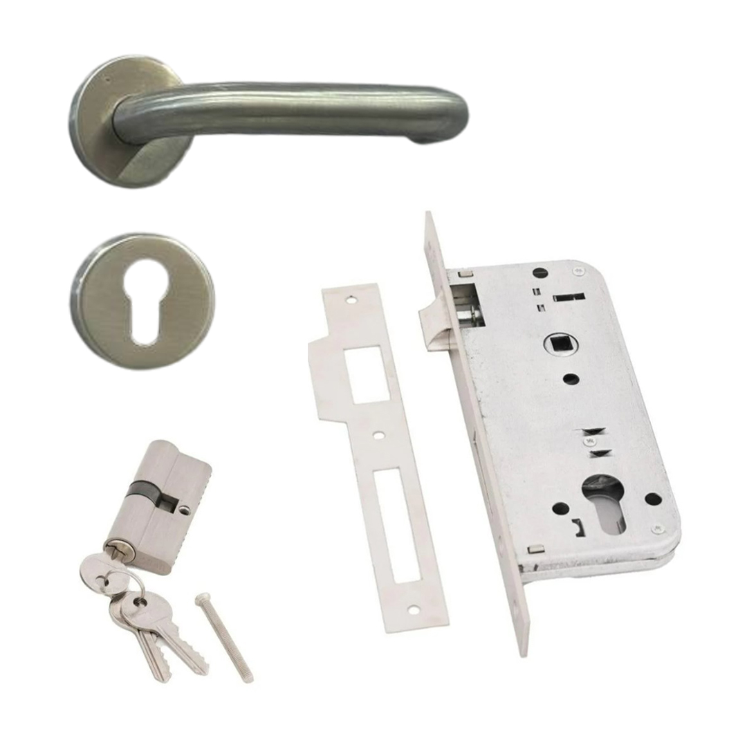 طقم ماسكة باب مع كيلون مع سلندر لون فضي 6018106