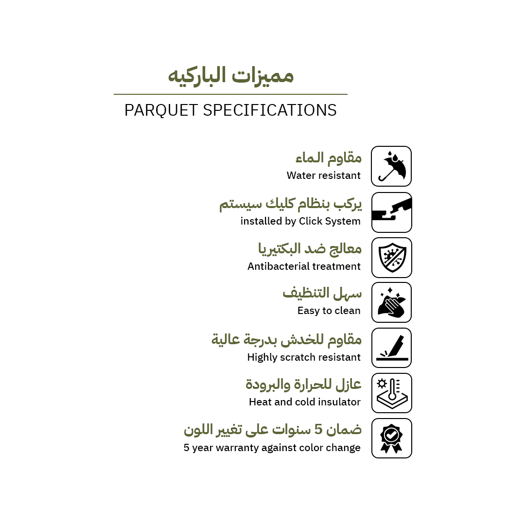 أرضيات خشبية باركيه أنيقة بملمس طبيعي ولمسات خشب واقعية، تمنح مساحتك طابعًا دافئًا مع أداء عملي وسهولة تنظيف.