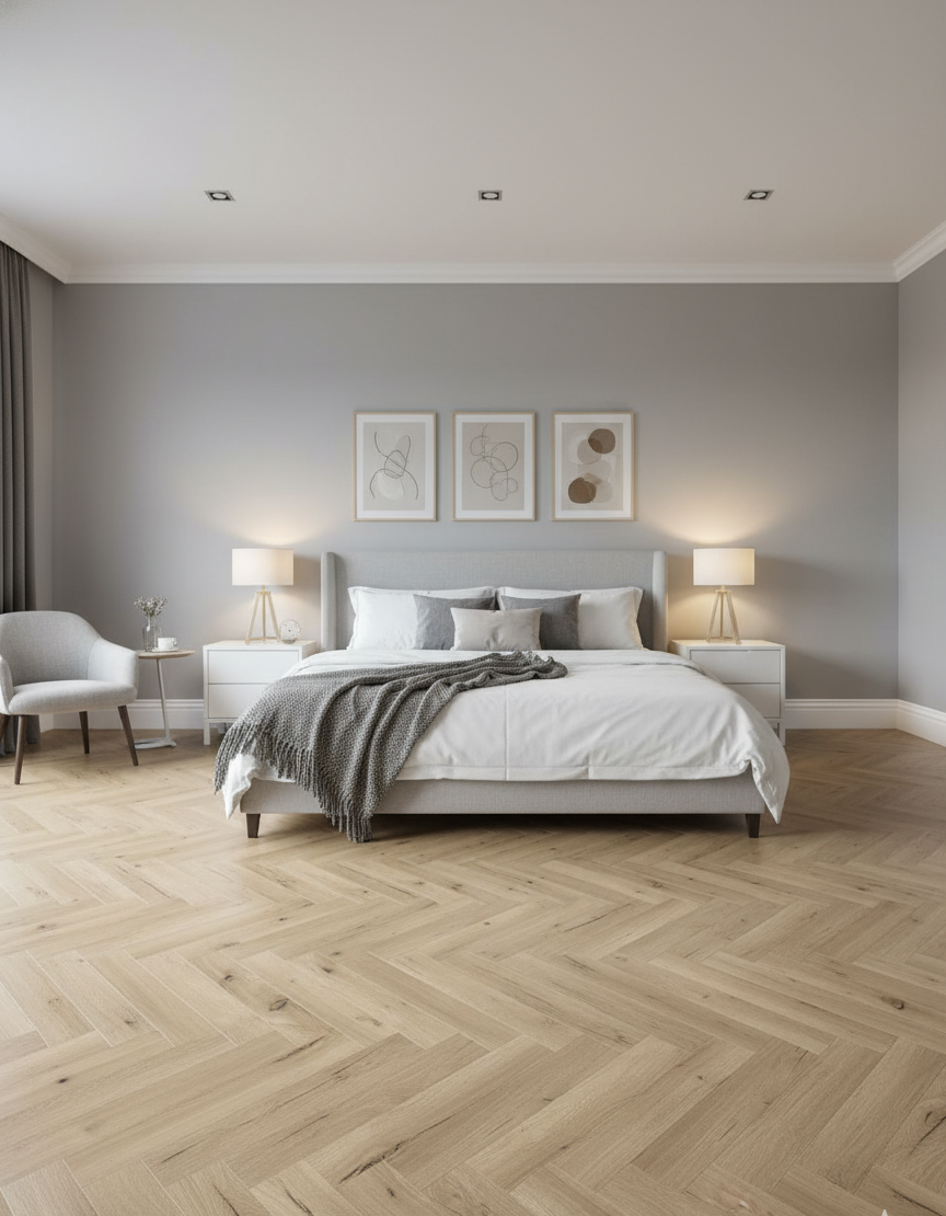 أرضيات خشبية باركيه أنيقة بملمس طبيعي ولمسات خشب واقعية، تمنح مساحتك طابعًا دافئًا مع أداء عملي وسهولة تنظيف.